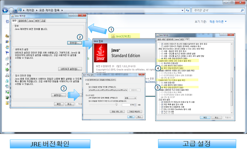 JRE 1.7 버전을 사용할 경우 보안이 강화되어 애플릿이 정상적으로 실행되지 않음.